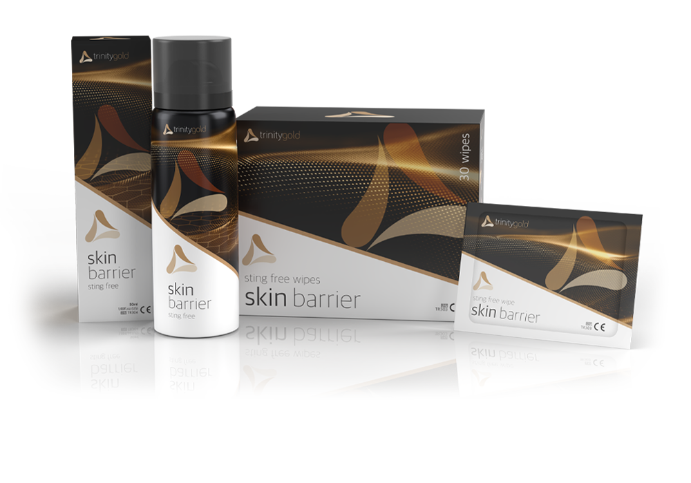 Huden rundt såret kan lett bli oppbløtt og sårbar. Trinity Gold Hudbarriere er utviklet for å beskytte huden mot skadelig påvirkning fra sårvæske, enzymer og klebemidler.